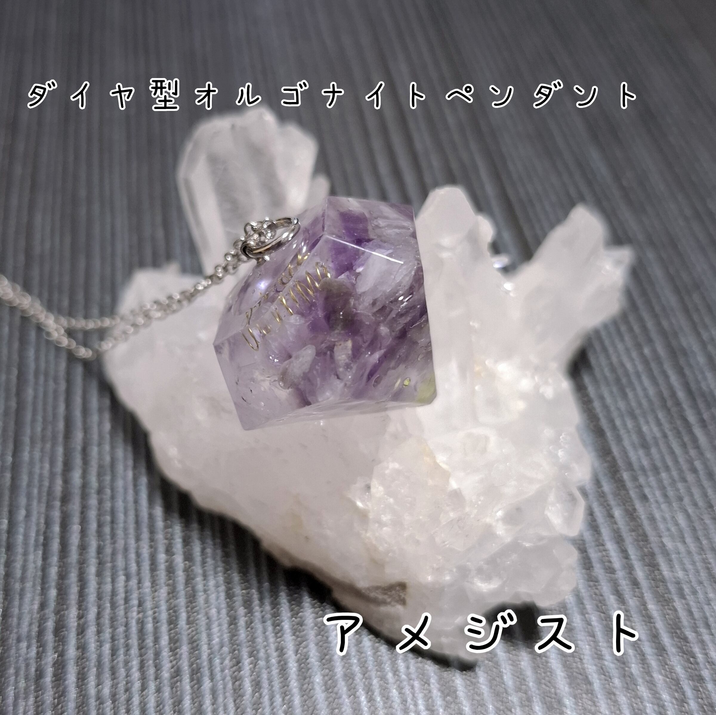 ダイヤ型オルゴナイトペンダント(アメジスト)